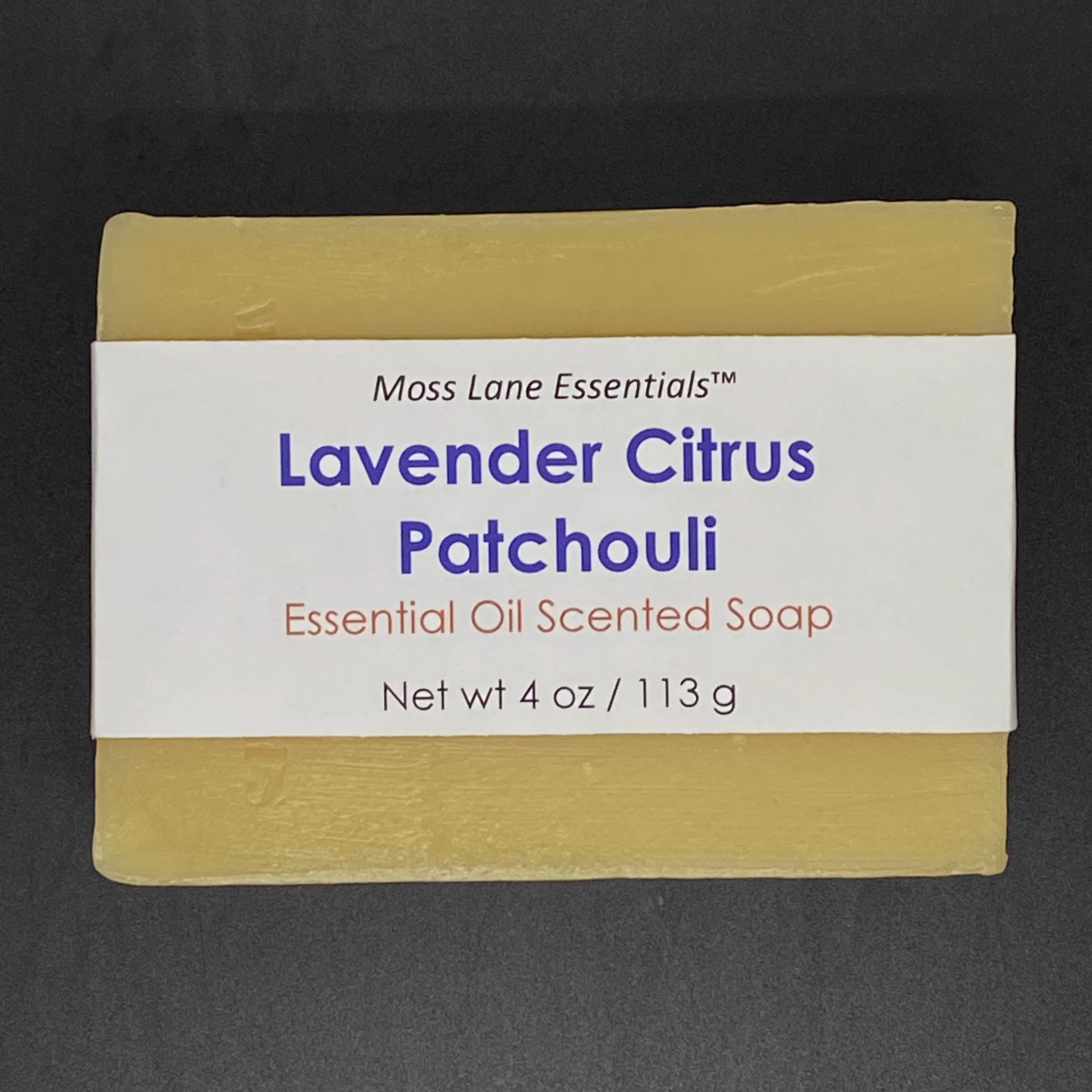 The scent: Essential oils of lavender, several citruses and patchouli combine to create the soothing yet lively fragrance in this all natural soap in our Moss Lane Essentials™ line.